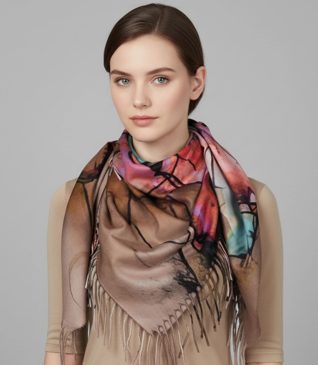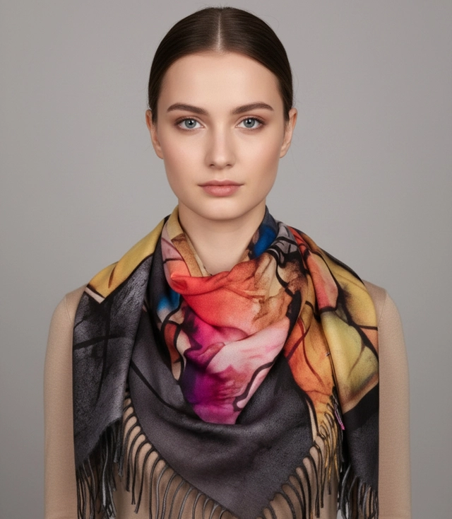 Eșarfă șal abstractă multicoloră elegantă cu ciucuri