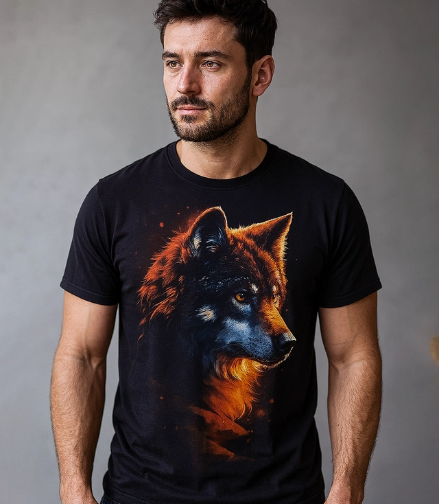 Tricou mare cu imprimeu de lup pentru bărbați din bumbac