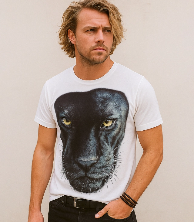 Tricou mare pentru bărbați cu imprimeu panteră din bumbac