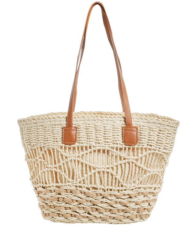 Geantă shopper de vară mare, țesătă, cu mânere rotunde