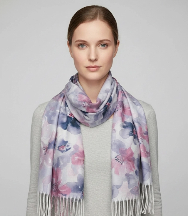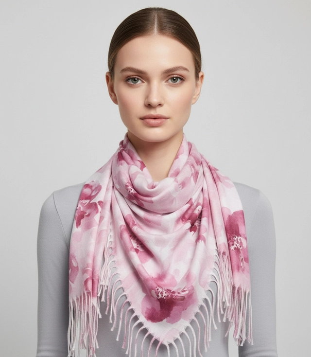 Eșarfă șal pentru femei cu model delicat în acuarelă și ciucuri