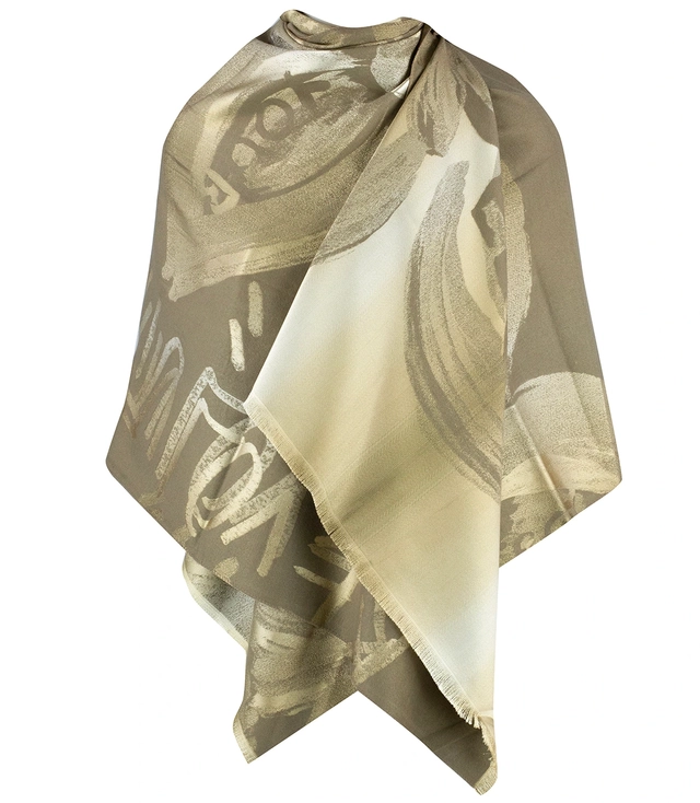 Eșarfă elegantă cu două fețe, cu fir auriu și model floral