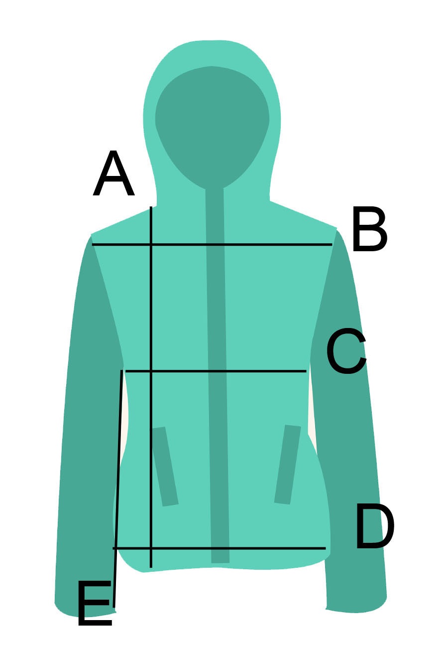 mărimeaB Lățimea bustuluiC Lățimea de josA Lungime totalăE Lungimea mânecii de la axilăD Latimea umerilor