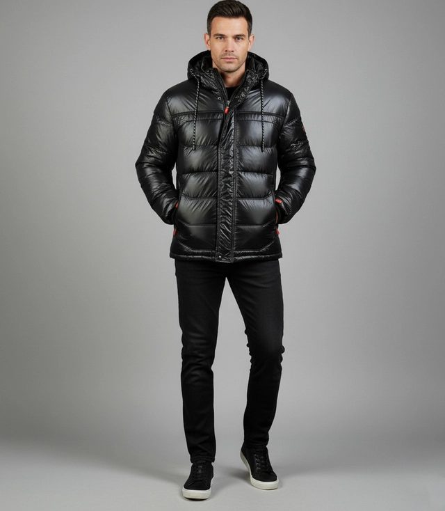 Jachetă matlasată de iarnă pentru bărbați cu glugă și luciu