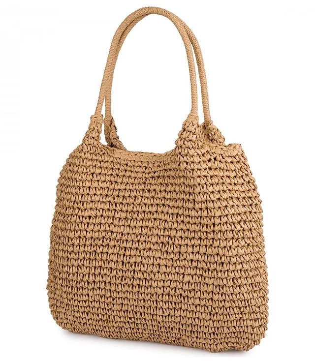 Geantă de mână boho din rafie cu curea reglabilă, mai groasă