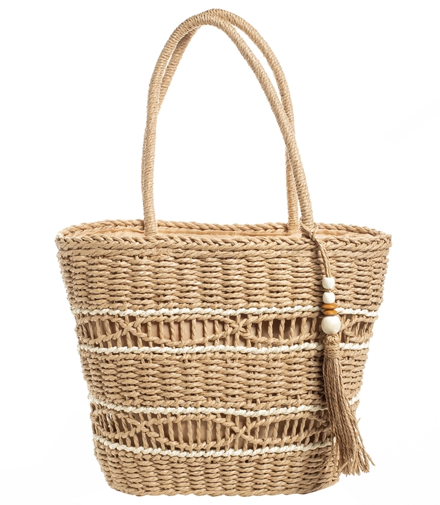 Coș mediu, geantă de vară, geantă de mână țesătă rigidă cu ciucuri