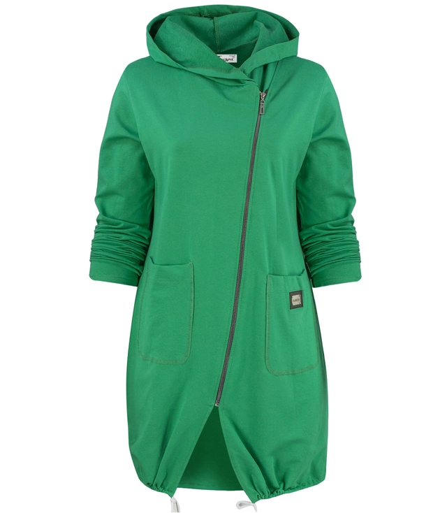 Hanorac lung subțire cu fermoar diagonal și glugă LILIANA