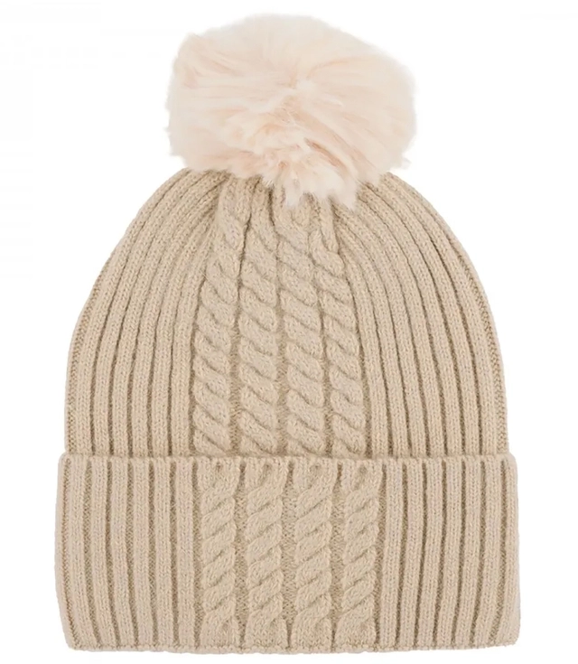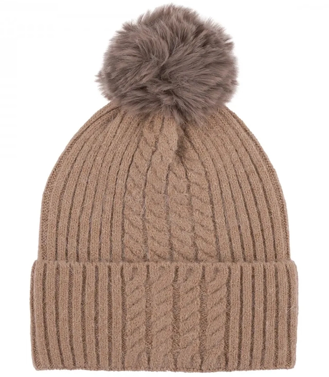 Șapcă caldă pentru femei cu pompom și țesătură interesantă toamnă-iarnă pălărie