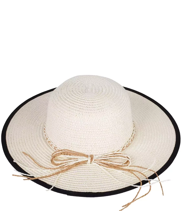 Pălărie de rafie de paie pentru femei cu bordură neagră