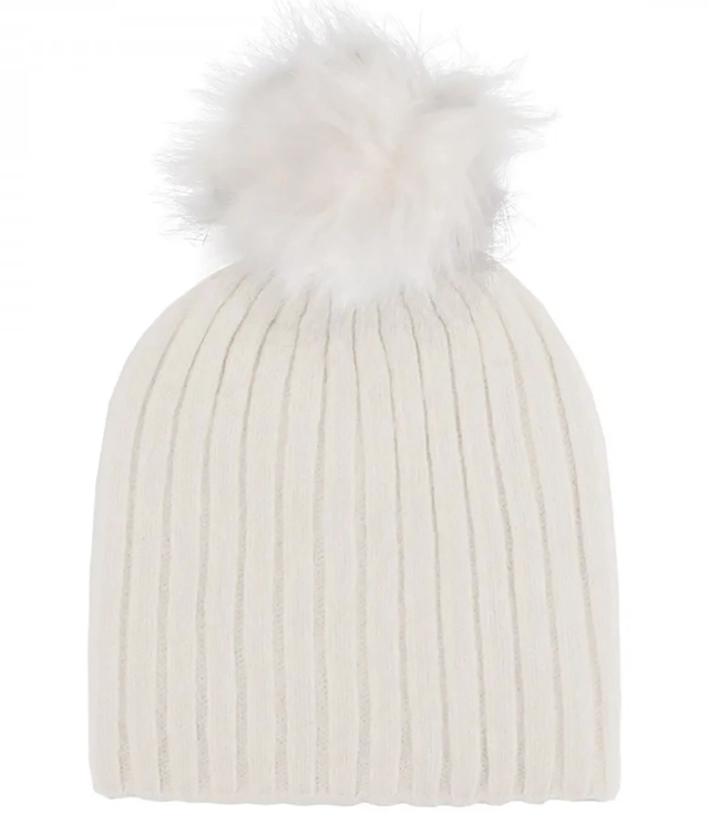 Șapcă caldă pentru femei cu pom-pom cu nervuri, țesută toamna iarna