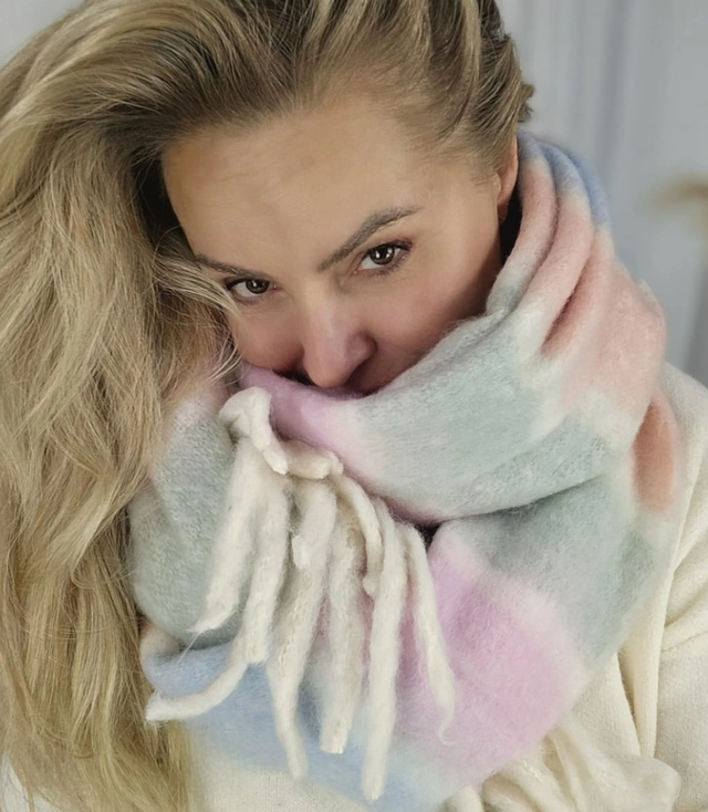 cald șal eșarfă în carouri pastel tesatura tricotate