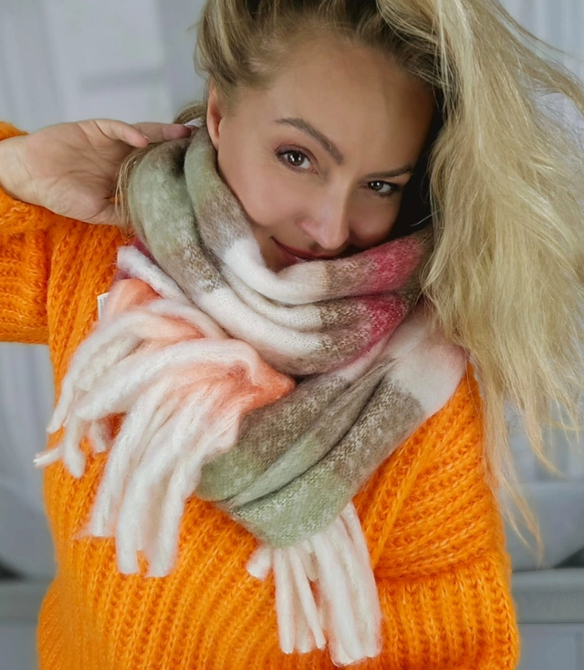 Eșarfă șal pufoasă pătrate tricot împletituri