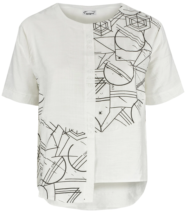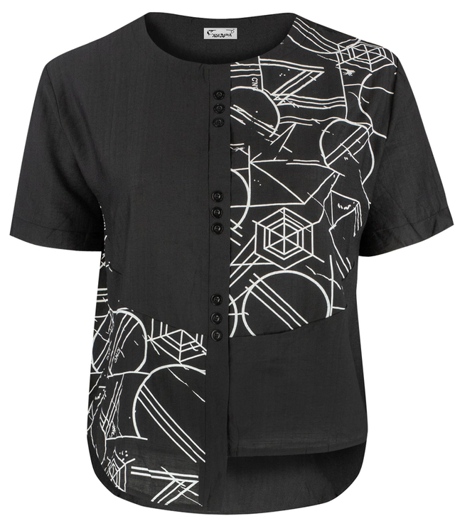 Camasa cu maneca scurta cu fata asimetrica si imprimeu PANAMA