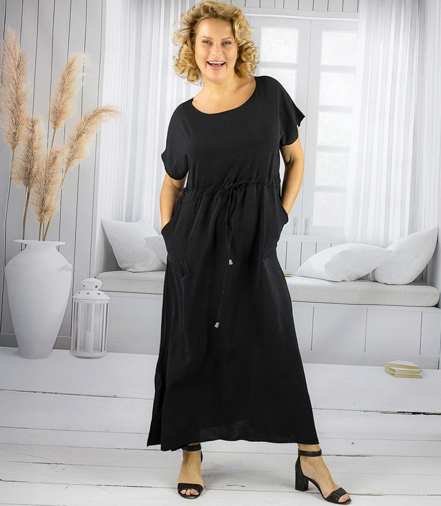 Rochie lungă maxi cu cravată în talie "Eleganță de vară"