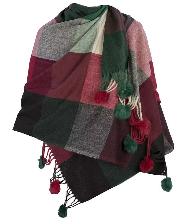Eșarfă eșarfă eșarfă caldă în carouri cu pompoane