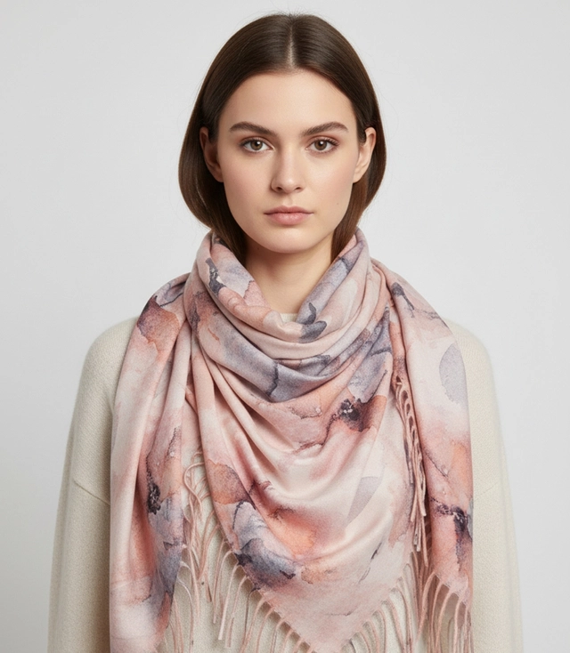 Eșarfă șal abstractă multicoloră elegantă cu ciucuri
