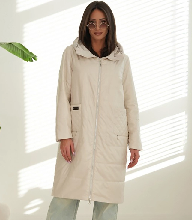 Jachetă lungă pentru femei cu matlasare diagonală Warm LUCY