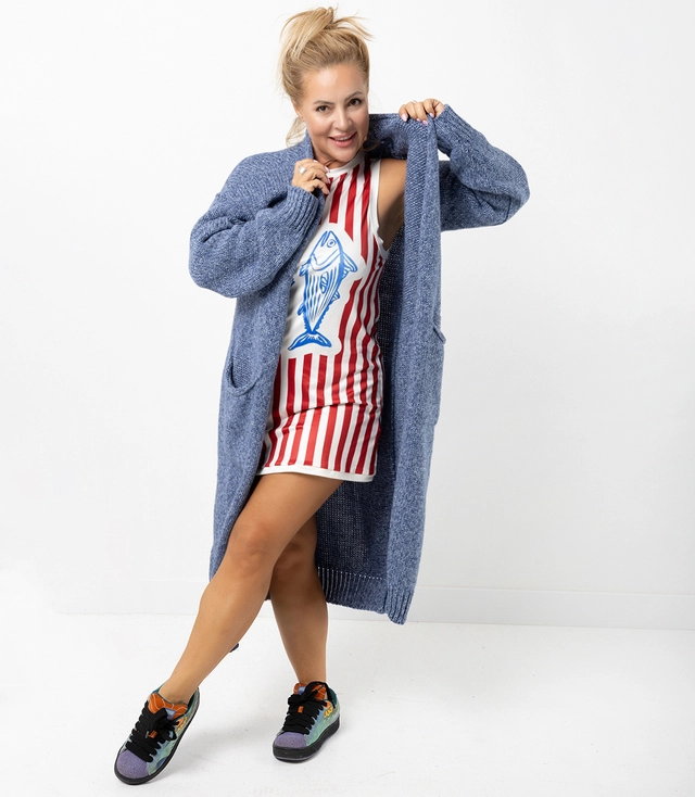 Pulover cardigan lung cu lână NEVER LOOK BACK