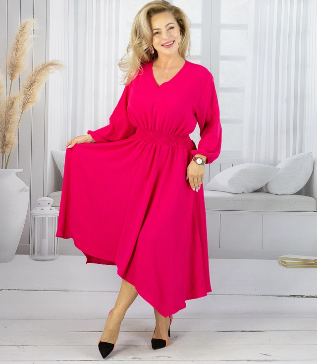 Rochie midi ADELE cu talie elastică și decolteu în V