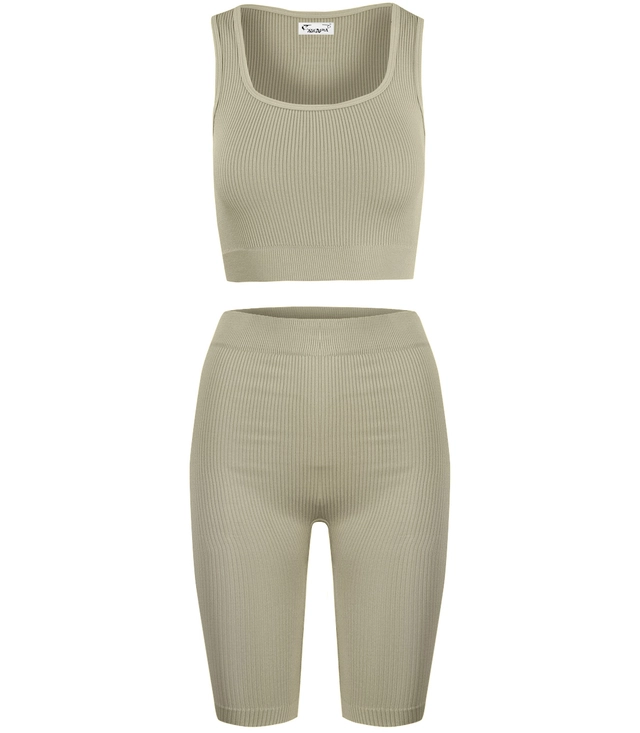 Set de jambiere scurte cu nervuri sportive + top cu bretele largi MISSY