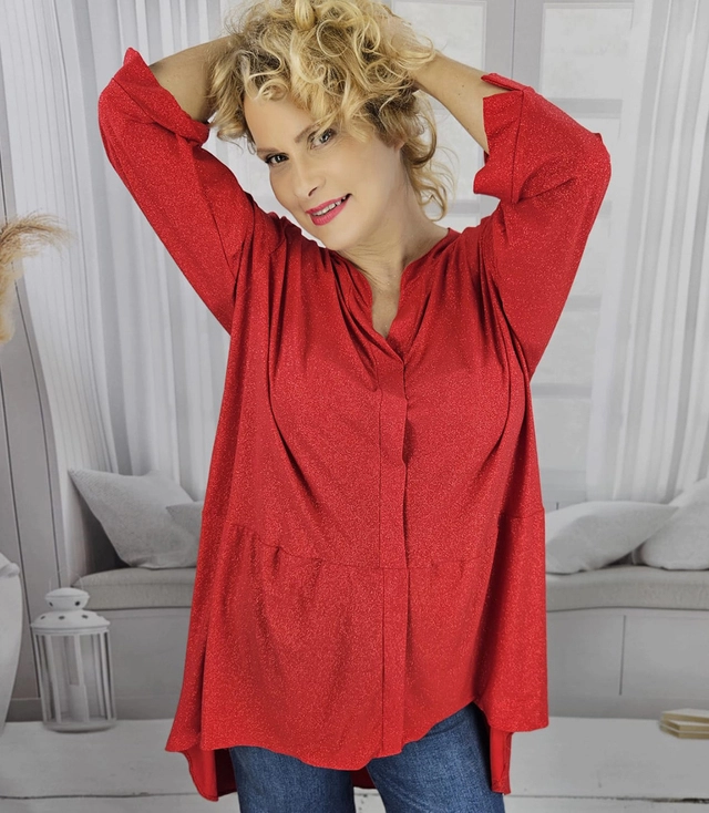 Cămașă tunică elegantă supradimensionată din brocart cu spate mai lung NEVADA