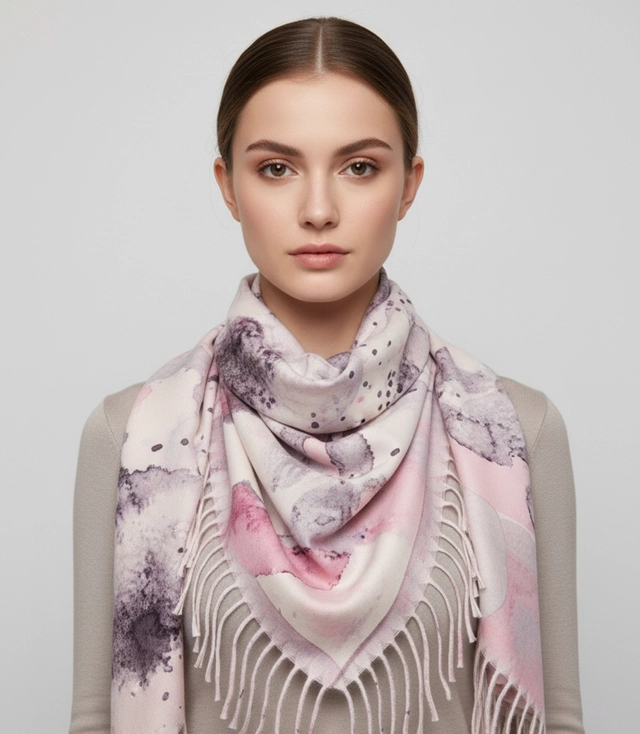 Eșarfă șal pentru femei cu model delicat în acuarelă și ciucuri
