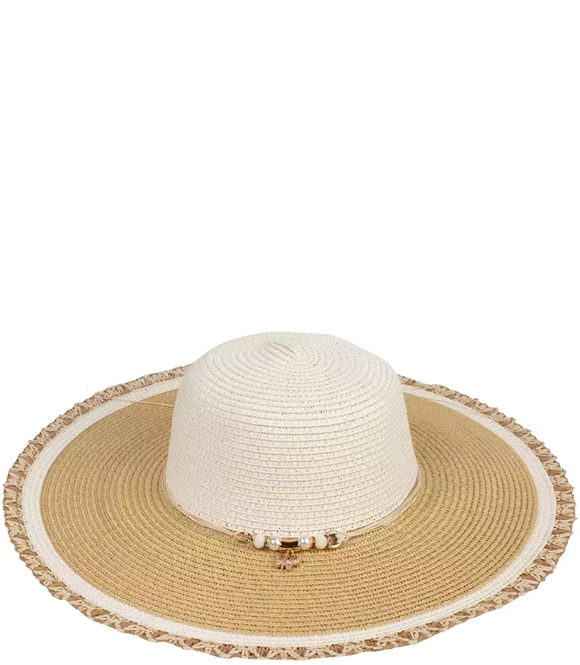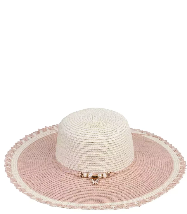 Pălărie de rafie de paie pentru femei cu bordură neagră