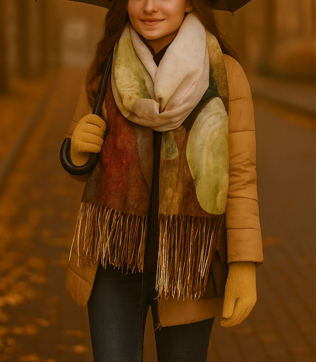 Eșarfă șal abstractă multicoloră elegantă cu ciucuri