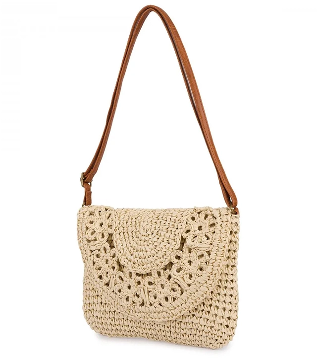 Geantă de umăr mică de vară din rafie de hârtie cu curea reglabilă