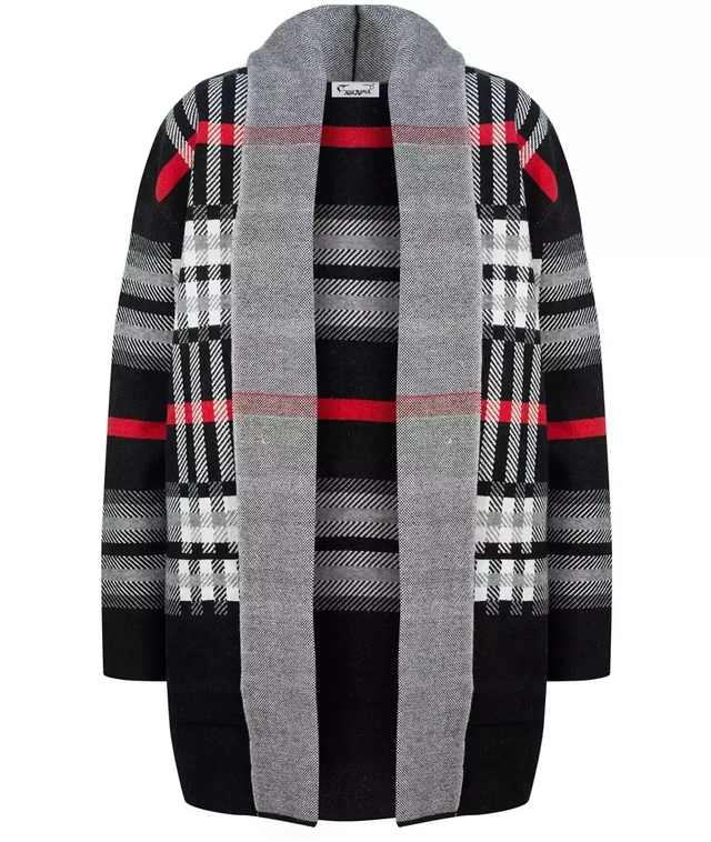 Pulover CALDE. Suprapunere cardigan în carouri