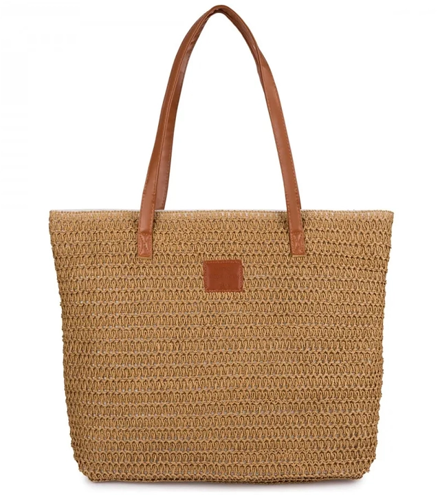 Geantă elegantă mică de rafie cu 2 curele împletite